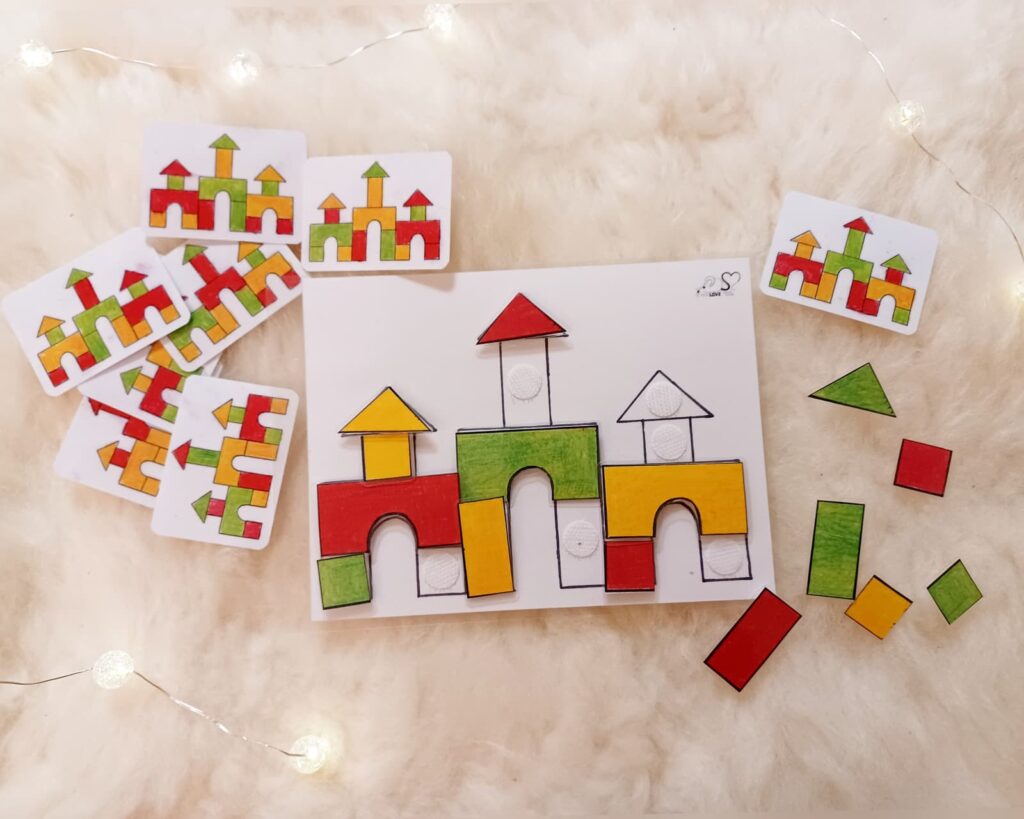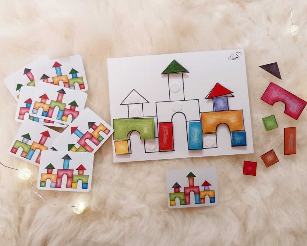 Kniha obsahuje náhodný jeden z pracovních listů PL14-PL16 viz níže. Jedná se o pracovní list stavění hradu, který mám ve 3 barevných provedeních. Pokud máte zájem o konkrétní barevnou variantu hradu, uveďte toto přání do poznámky v objednávce