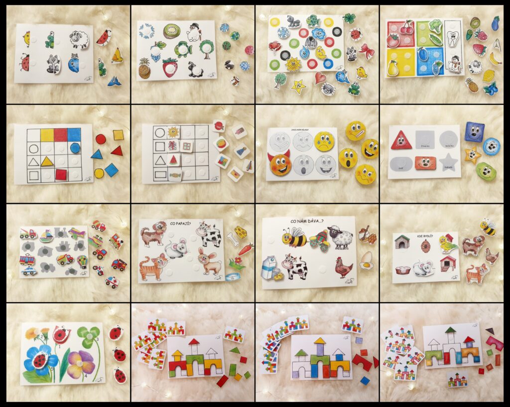 PL01-PL14 (PL15, nebo PL16) jedná see o tyto listy: doplňování polovin, textur, třídění podle barviček, tvary, emoce, stavění hradu, počítání, kvíz na procvičení logického myšlení, dělení obrázků podle tvaru, co papají zvířátka, co nám dávají a kde bydlí