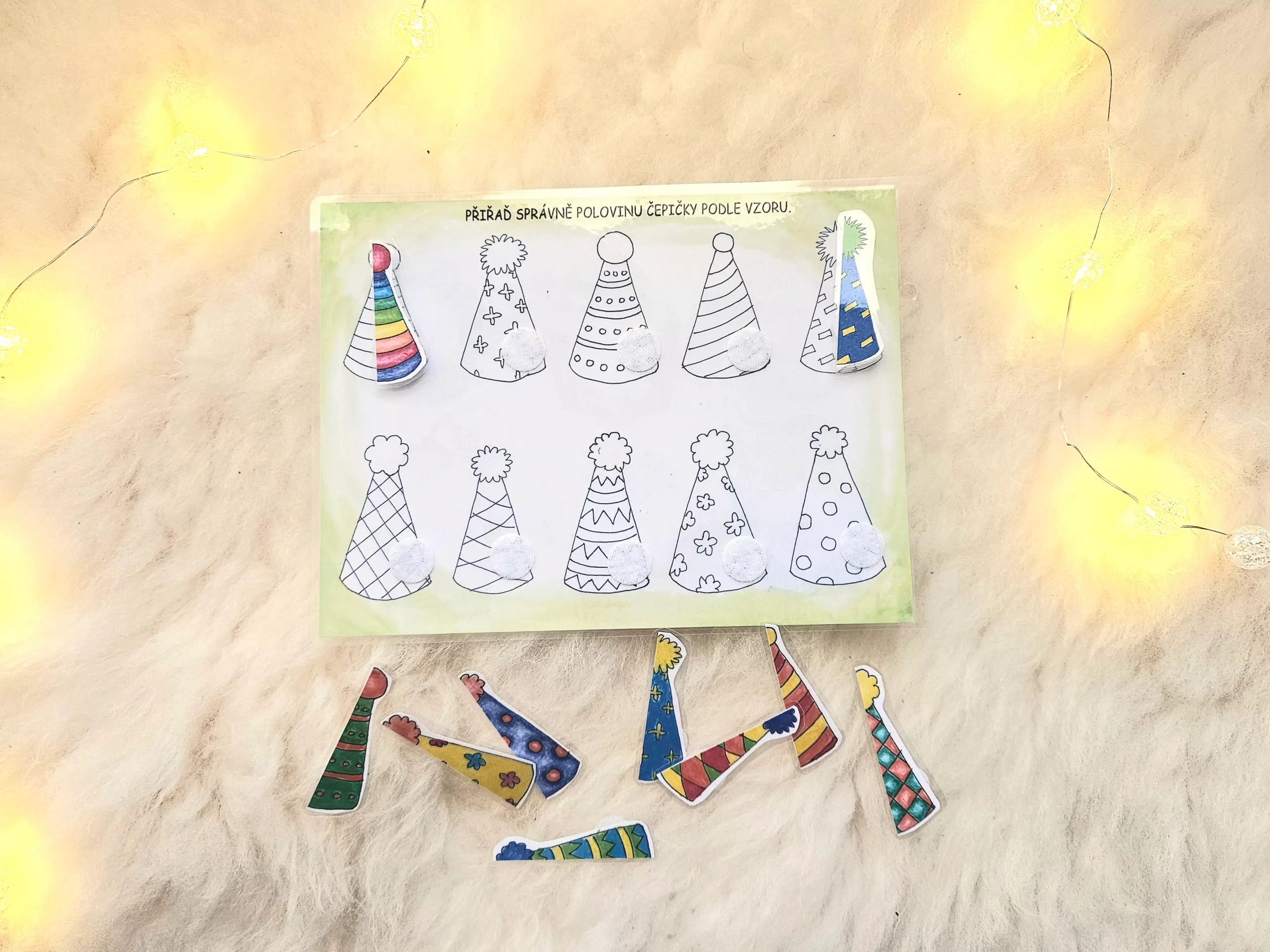 Úkolem tohoto pracovního listu je správně přiřadit shodné poloviny čepiček.