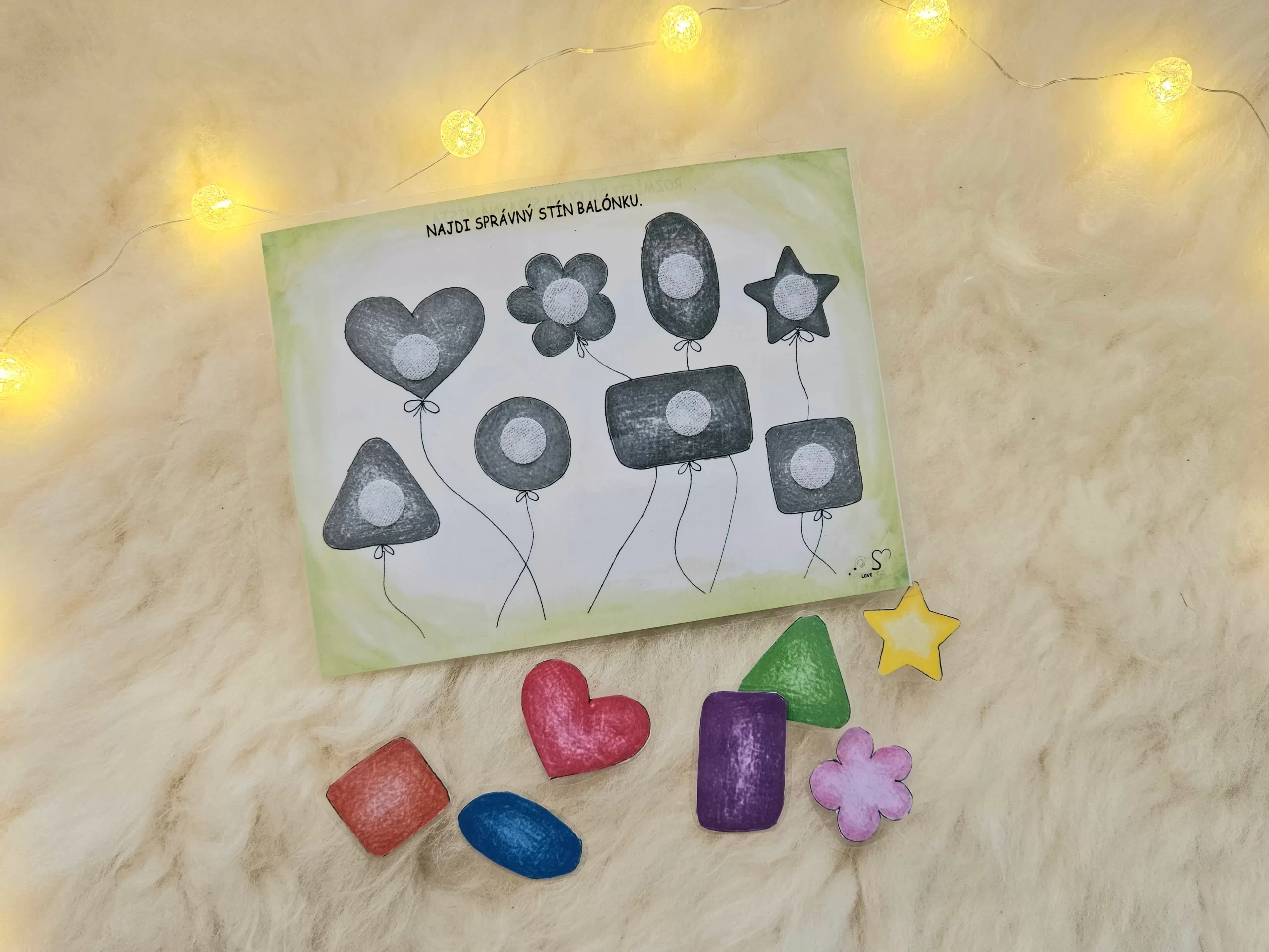 Úkolem tohoto pracovního listu je správně rozmístit tvary podle tvaru balónků.