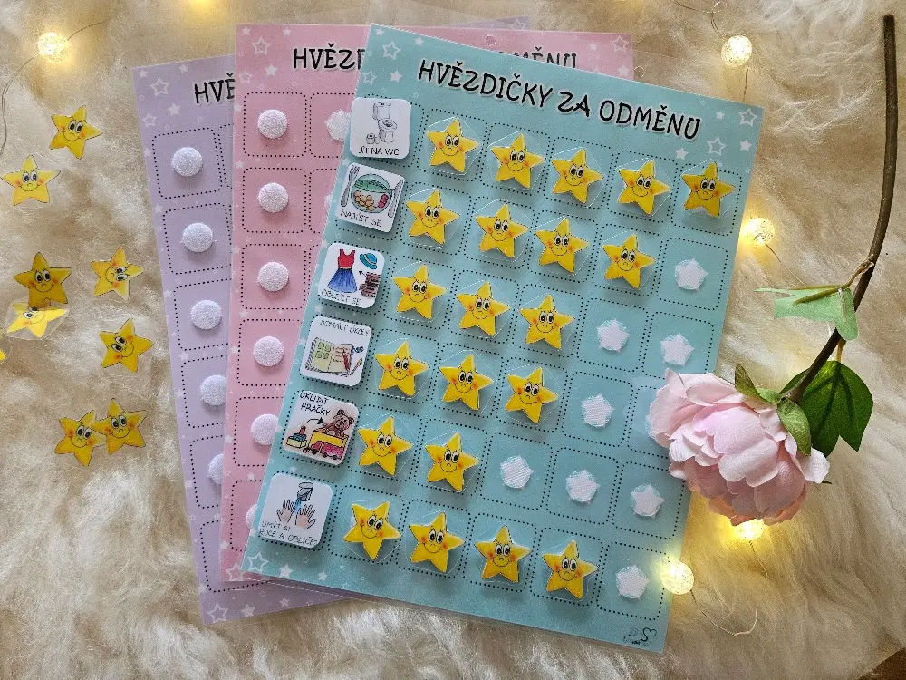 Za každou splněnou činnost nebo úkol, získává dítě hvězdičku. Po nasbírání všech hvězdiček je odměněno – konkrétní odměnu si společně domluvte.